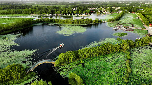 这是山东省济宁市微山县微山湖二级坝湿地公园景色(2024年8月13日摄)。新华社记者 郭绪雷 摄